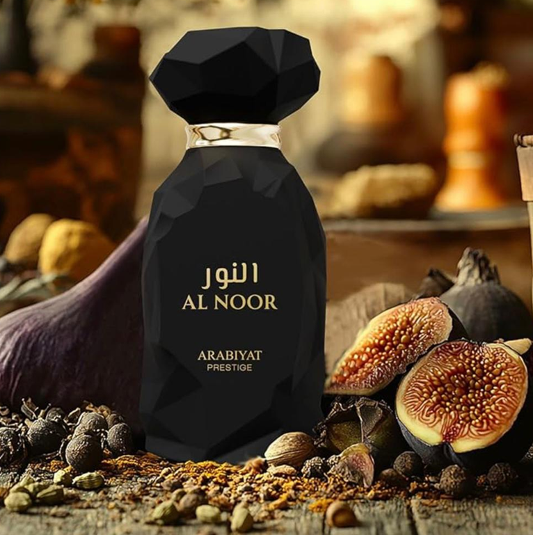 Al Noor by Arabiyat Prestige is a Oriental Spicy fragrance for women and men. This is a new fragrance. Al Noor was launched in 2025. The nose behind this fragrance is Mustafa Firoz. Top notes are Cardamom, Saffron and Nutmeg; middle notes are Iris, Fig, Labdanum and Vetiver; base notes are Leather, Patchouli, Tonka Bean and Vanilla.