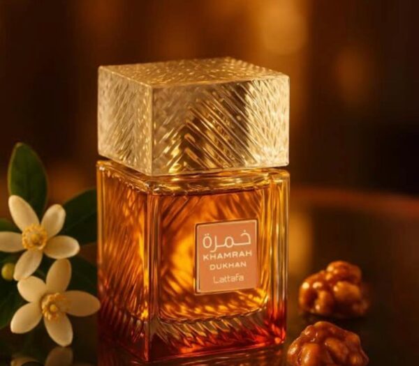 Khamrah Dukhan is a new unisex Oriental fragrance by Lattafa Perfumes. Inspired by the ancient Middle Eastern ritual of burning perfume, this scent exudes raw energy, elegance, and allure with its captivating notes of spices, tobacco, and amber. With a masculine touch, it combines smoked spices, incense, and earthy patchouli to create a bold and compelling aroma.