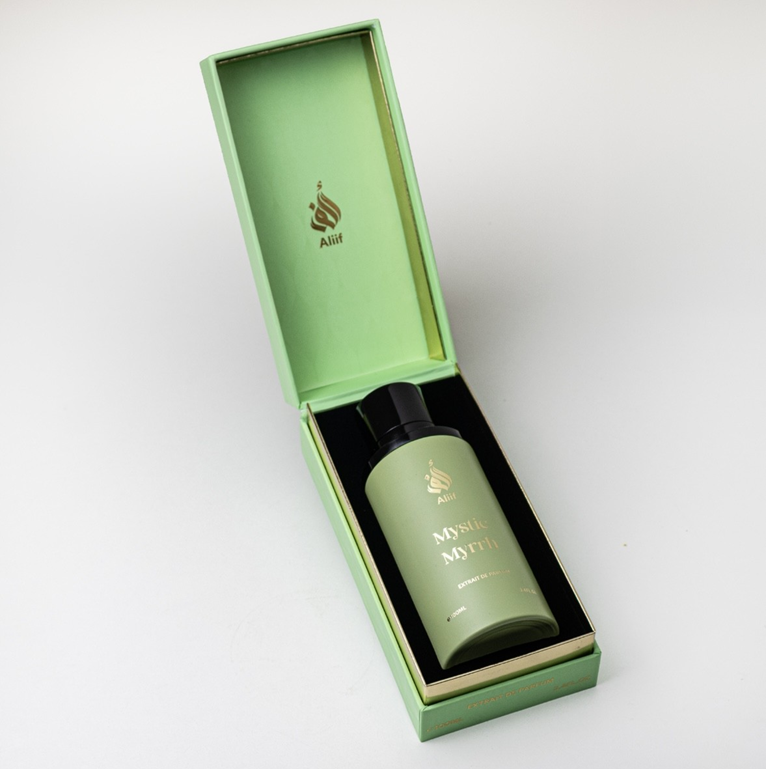 Aliif Mystic Myrrh exudes sweetness and seduction, combining warm spicy and floral notes with vanilla and coffee. The top notes of fruity and mild spicy tones provide a fresh and pleasant introduction.